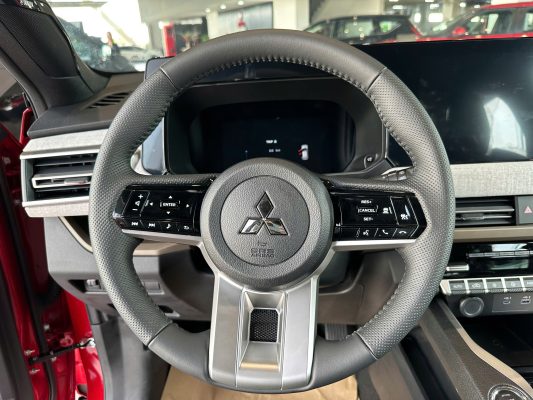 Vô-lăng xe 3 chấu tích hợp phím chức năng. Được định vị tại phân khúc SUV cỡ nhỏ với kết cấu 5 chỗ ngồi nhưng không gian nội thất Mitsubishi Xforce vẫn khá rộng rãi nhờ sở hữu kích thước lớn nhất nhóm.